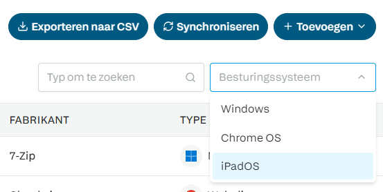 Wanneer je deze stappen hebt uitgevoerd worden de apps beschikbaar in Manage.
