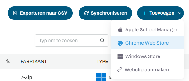 - Klik op + Toevoegen en dan op Chrome Web Store.   - Kies Chrome Web Store