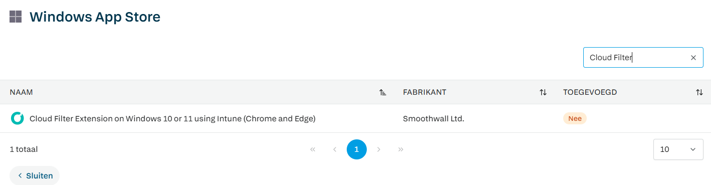 - Zoek in het overzicht van werkplekapplicaties op de app Cloud Filter Extension.