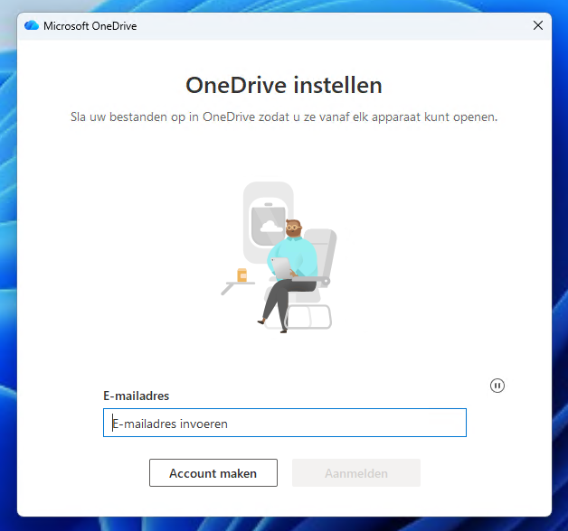 Vul je e-mailadres in en klik op Aanmelden De mappen en bestanden van je OneDrive worden gesynchroniseerd.