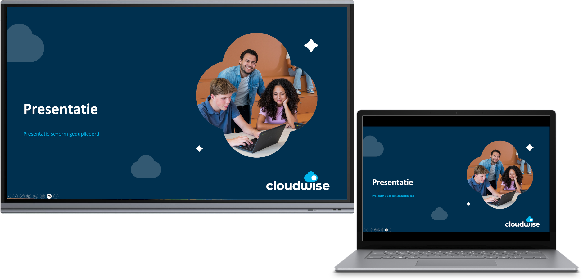 Bij het dupliceren (of klonen) van het bureaublad wordt hetzelfde beeld weergegeven op beide beeldschermen. Deze optie wordt het meest gebruikt bij presentaties.