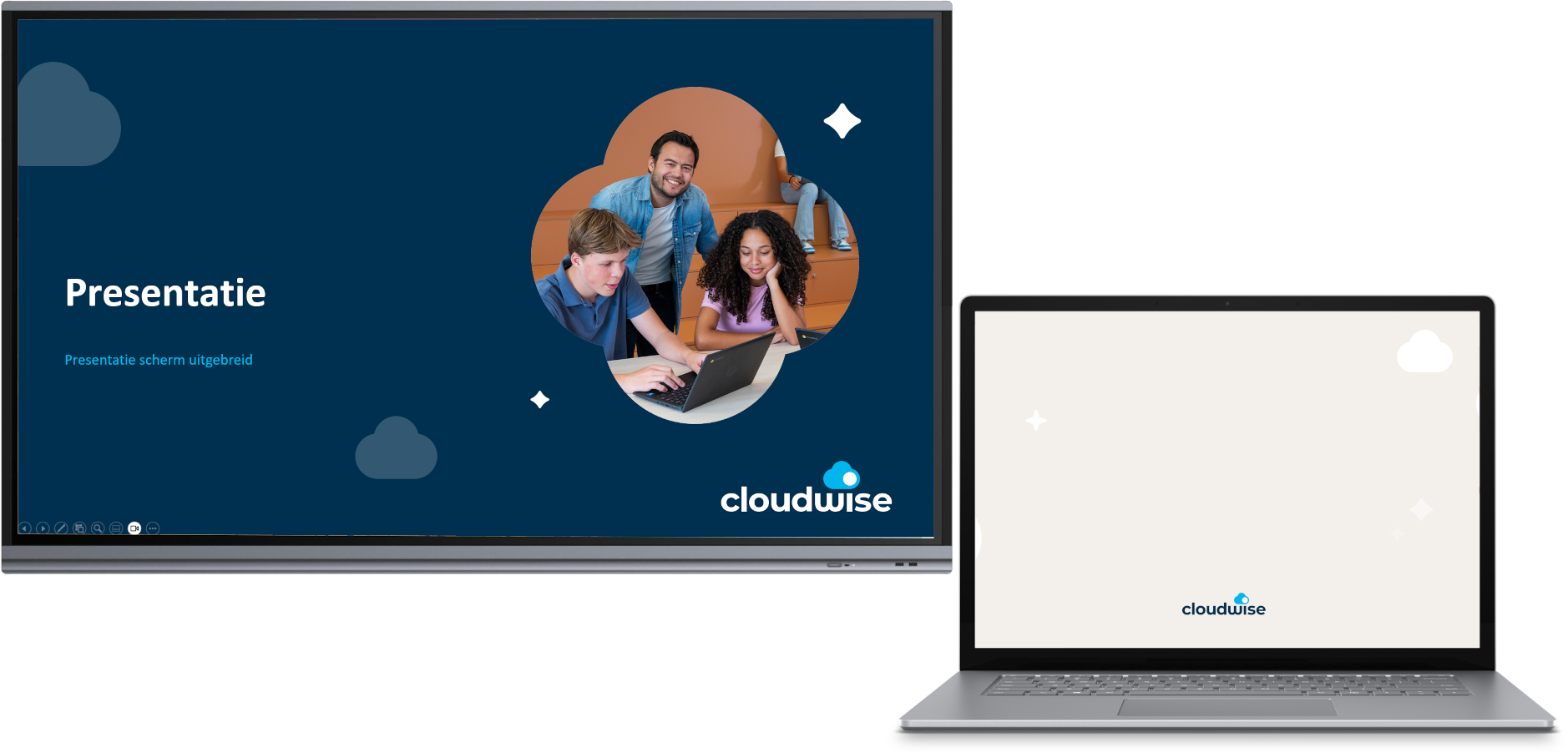Als je beschikt over twee beeldschermen die op één computer zijn aangesloten (bijvoorbeeld een monitor en een touchscreen), kun je deze beeldschermen dupliceren of uitbreiden. Beide instellingen hebben hun eigen kenmerken.
