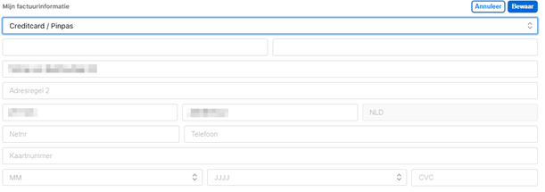- Selecteer in het eerste veld Creditcard / Pinpas en vul alle gegevens in.