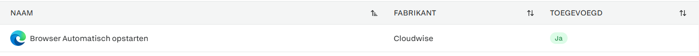 Om ervoor te zorgen dat de Edge browser automatisch opstart met de vooraf ingestelde startpagina (zie hierboven), dienen we de applicatie “Browser Automatisch opstarten” toe te voegen.